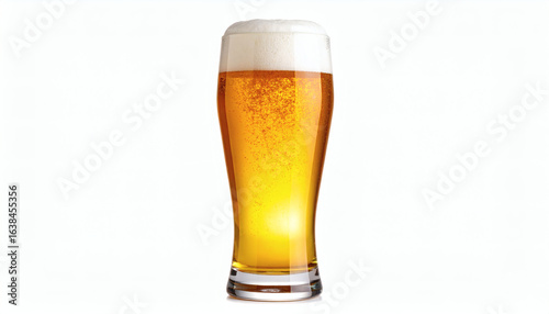 Beer glass isolated on white background premium lager drink cutout high resolution studio photo for product display and beverage advertising