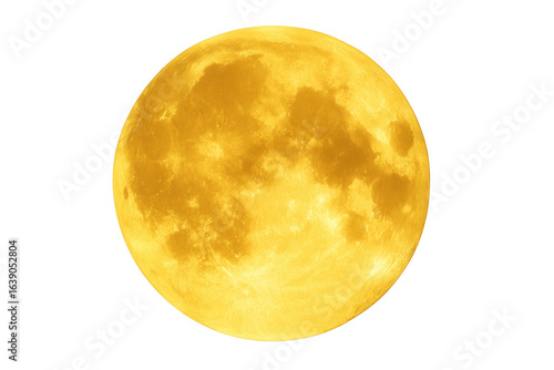 Glowing full moon revealing detailed lunar surface, craters visible against transparent backdrop, ideal for graphic design compositions