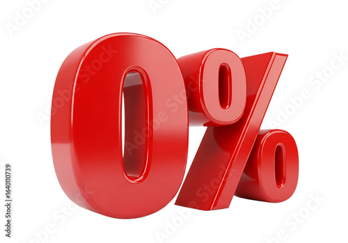 Red glossy zero percent sign isolated on transparent background, representing a discount or special offer