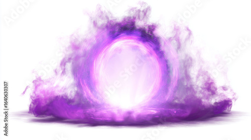 Glowing purple portal with swirling magical smoke and rays, white background