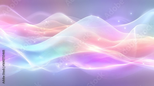 Abstract AI tech background with pastel neon mesh gradient and layered translucent waves