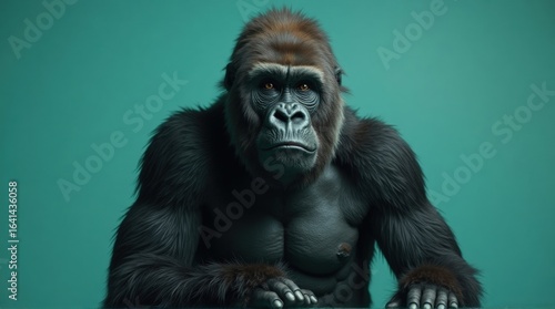 Muscular Gorilla with Human-like Chest and Intense Expression on Green Background