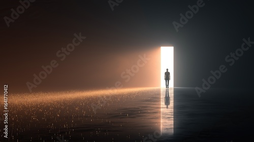 A human under a light symbolizing knowledge and an AI agent and AGI technology using agentic superintelligence in the future for autonomy and the growth of ASI during the singularity