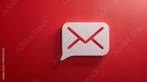 Nowoczesna ikona 3D wiadomości email w dymku czatu na czerwonym tle. Koncepcja kontaktu, marketingu i newslettera. Baner z miejscem na tekst.