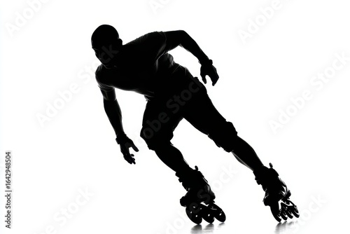 Man Rollerblade Silhouette. Full-Length of Inline Skater in Backlit Isolated Action
