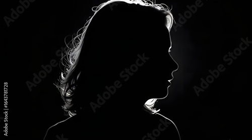 A dramatic black and white silhouette of a person's profile with rim lighting. Anonymous and mysterious concept. Portrait of an unknown individual.