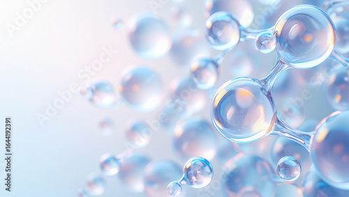 Peptide molecules, cosmetic structure, nanotechnology background, skincare ingredients, anti-aging serum science, beauty formulation, molecular research, transparent spheres, dermatology innovation