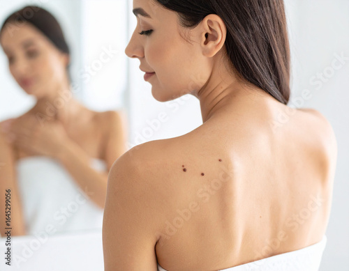 Kobieta z pieprzykami znamionami na plecach