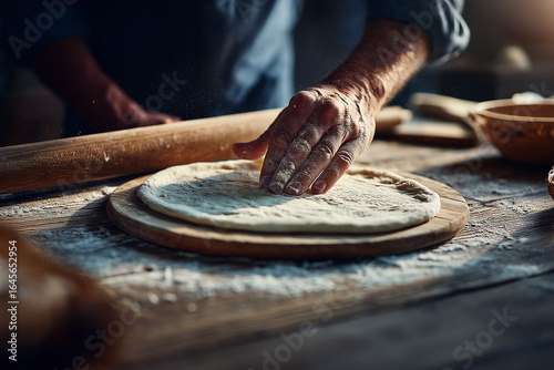 Formowanie ciasta na pizzę i układanie go na blaszce, precyzyjne nadawanie kształtu, przygotowanie do dodania sosu, sera i świeżych dodatków.