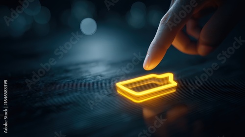 Recharging: A luminous glowing battery icon is illuminated, as a finger makes contact, symbolizing the act of charging up or replenishing. A conceptual image, symbolizing energy, power.– Generative AI