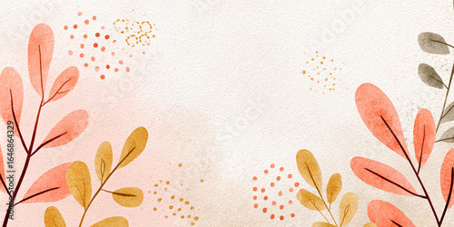 Fondo de acuarela con hojas de otoño y detalles dorados, diseño delicado y elegante.