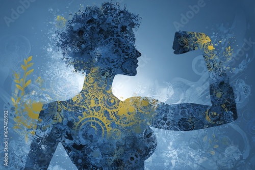 SILWETA SILNEJ KOBIETY, ABSTRAKCYJNA KOMPOZYCJA