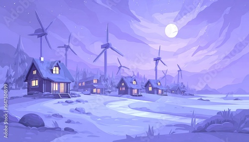 PASTELOWA NOCNA ILUSTRACJA EKOLOGICZNEJ WIOSKI WIEJSKIEJ