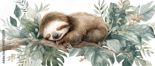 SŁODKI LENIWIEC ŚPIĄCY NA GAŁĘZI