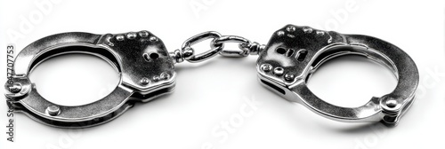 Metal handcuffs resting on a white surface, symbolizing law enforcement and criminal justice themes