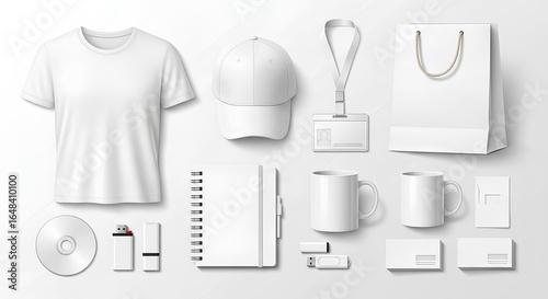 Blank corporate identity mockup template featuring various promotional merchandise. A complete branding package for visual design presentation.