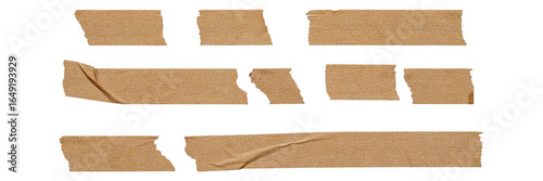 set of brown adhesive torn tape isolated transparent png background,Paper tape sticker with ripped edges,Design template or mockup.Torn masking tape