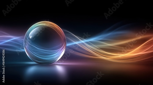 Floating sphere of light surrounded by vibrant colors symbolizes a peaceful soul and emotional shelter in a tranquil setting