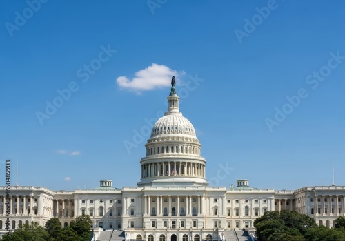 United States Capitol Building bathed in sunshine against a blue backdrop