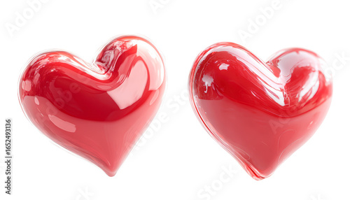 3D render Two glossy red hearts are placed side by side against a transparent background, Ideal for Valentine's Day promotions isolated on transparency PNG background, romantic cards