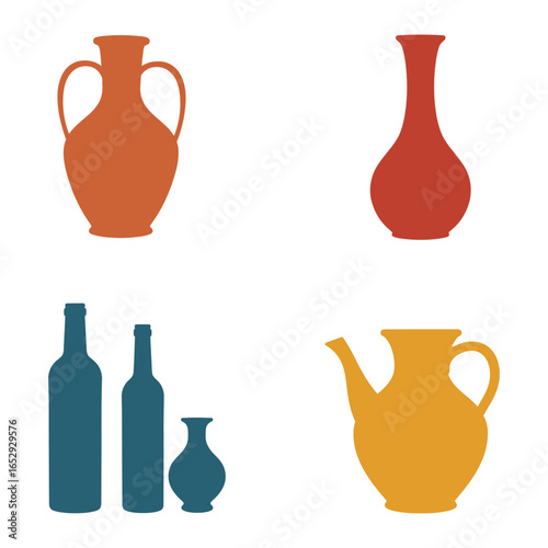 Collection of Various Vase and Bottle Shapes in Silhouette Style on White Background silhouette