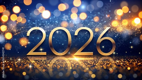 Elegant 2026 New Year Celebration Background with Golden Numbers and Sparkling Lights
