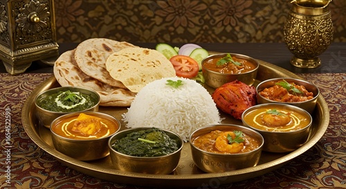 "Autentyczne Thali Gujarati z ryżem, chapati, soczewicą i deserami"