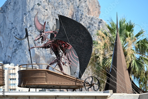 pomnik w Calpe metalowy diabeł w rydwanie