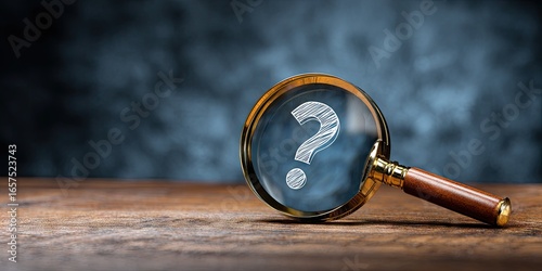 Magnifying glass with question mark, seeking answers