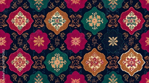Elegant Modern Artwork of a Flawless Repeating Geometric Pattern Fusing Moorish Tessellations with Peranakan Motifs in a Clean Vector Style