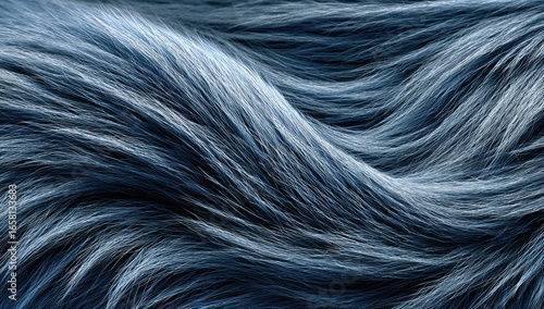 Close-up view of flowing, textured, dark-blue fur or hair