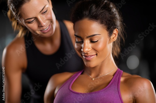 Trenerka fitness wspiera kobietę podczas treningu na siłowni