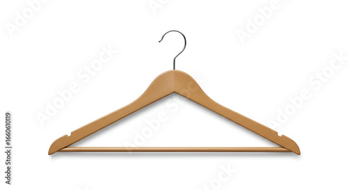 Simple wooden clothes hanger with metal hook placed on a minimal white background