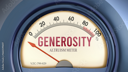 Generosity and Altruism Meter that hits less than zero, showing an extremely low level of generosity, none of it, insufficient. Minimum value, below the norm. Lack of generosity. ,3d illustration