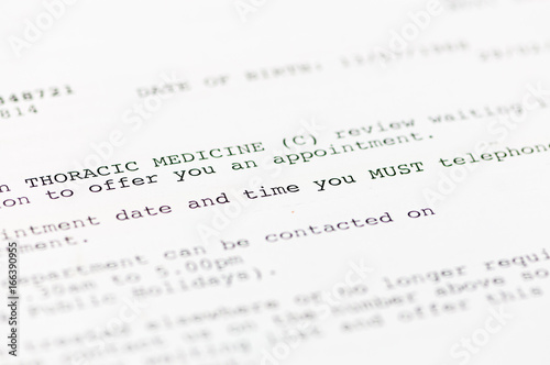 Patient appointment letter advising of an appointment with the Thoracic Medicine Clinic.