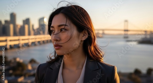 夕暮れのベイシティで黄昏る日本人女性