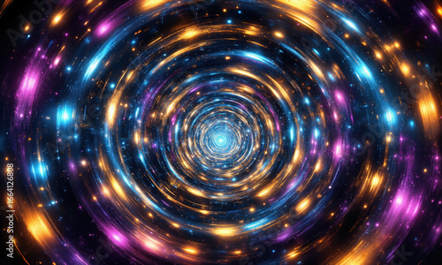 #982479441A vibrant, colorful, and intricate abstract design with concentric circles and glowing segments.