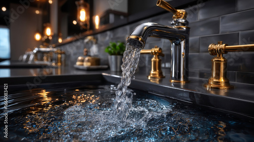 Water leak from sink pipe in bathroom vector graphic illustration, leaked and splash water from the pipe, pipe repair and maintenance service