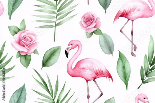 Tropical isolated pattern with flamingo. Wat. Exotic avian design solitary tropic motif roseate waterbird artwork insular backdrop paradisiacal fauna summer vibrant nature jungle