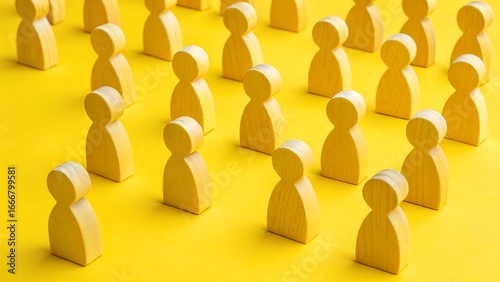 Grid of Yellow Figurines on Yellow Background – Conformity and Population, Social Theme, Abstract Uniformity, community, repetition, identity, organization, crowd, structure