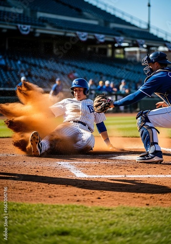 Baseball player sliding into base