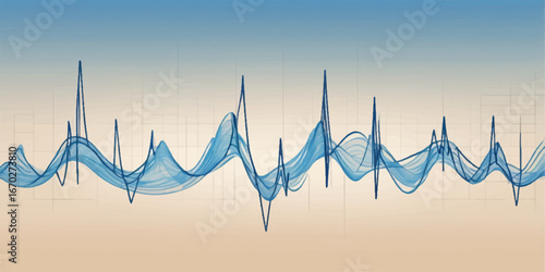 Medical heartbeat cardiogram illustration on a blue background shows a rhythmic heart pulse wave