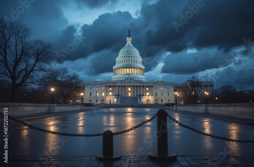 Government Shutdown Concept at U.S. Capitol, Dusk