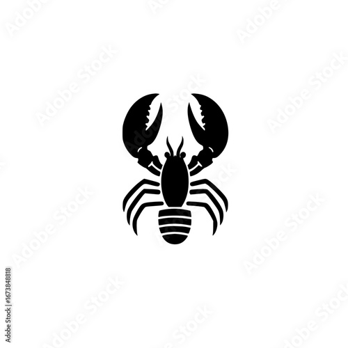 Minimalist black-and-white vector illustration of a crawling crab with prominent claws