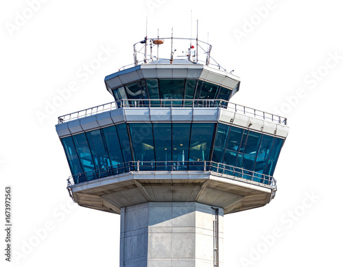 Modern Airport Control Tower in Daylight, Front View, Isolated Transparent Background PNG