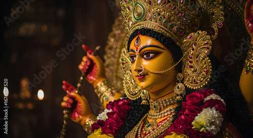 Beautiful statue of the hindu goddess durga for navaratri and durga puja festival a concept for worship religion culture tradition and spiritual art