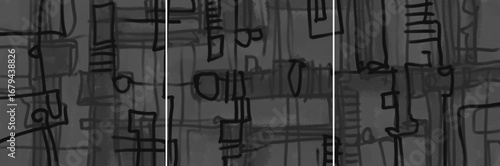 Modern interior triptych. The picture is painted by hand on a tablet.