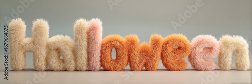 Furry pastel letters spell Halloween, evoking cozy autumn nights, whimsical oddity, and the unlikely charm of Fluffernutter Day