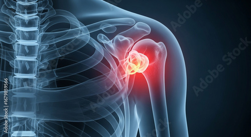 Shoulder pain anatomy showing inflammation of the rotator cuff for medical imagery