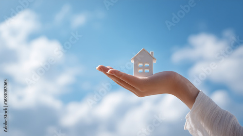 女性が家の模型を手にのせる